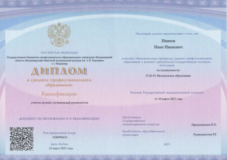 Диплом музыкального колледжа